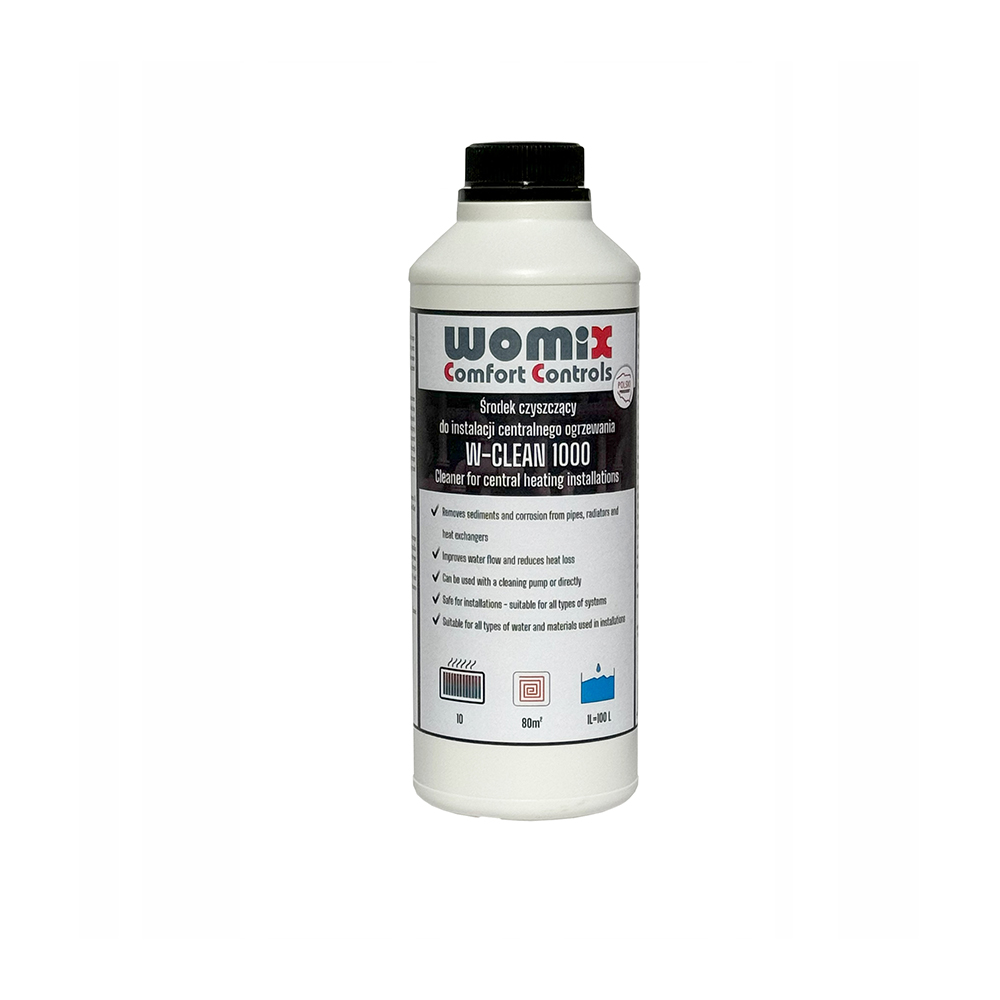 W-CLEAN100 to profesjonalny środek czyszczący do instalacji centralnego ogrzewania przeznaczony do usuwania osadów, kamienia kotłowego, rdzy oraz innych zanieczyszczeń gromadzących się wewnątrz instalacji. Regularne stosowanie preparatu poprawia efektywność wymiany ciepła, zwiększa żywotność urządzeń grzewczych i zapobiega awariom.