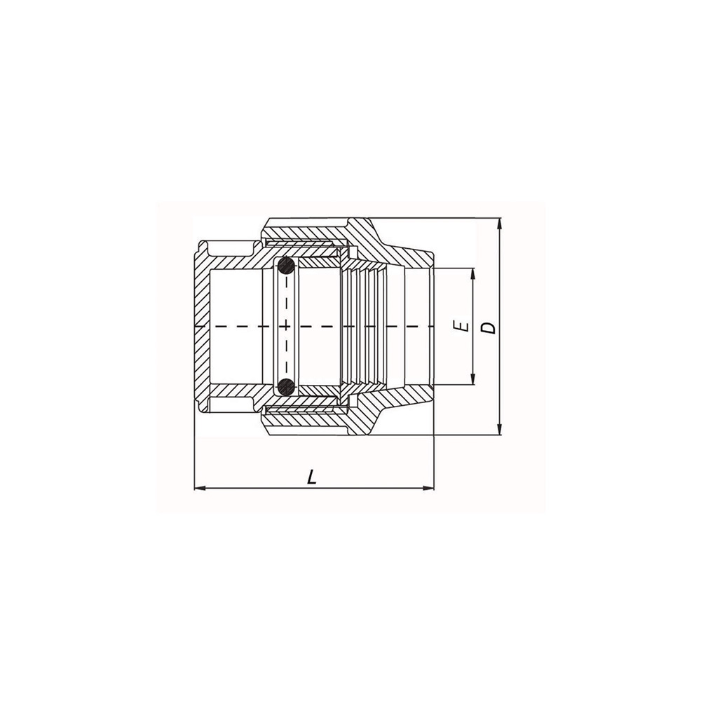 • Materiał: Korpus i nakrętka z polipropylenu (PP), uszczelka typu o-ring (NBR), pierścień zaciskowy z poliacetalu.