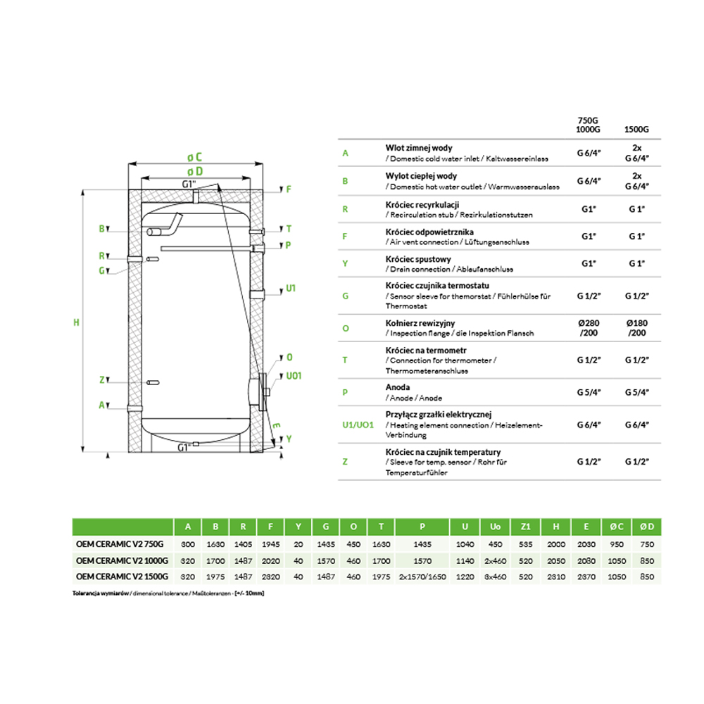 Model V2 1000 G bez wężownicy przeznaczony do magazynowania wody użytkowej oraz ewentualnego jej ogrzewania za pomocą opcjonalnej grzałki elektrycznej.