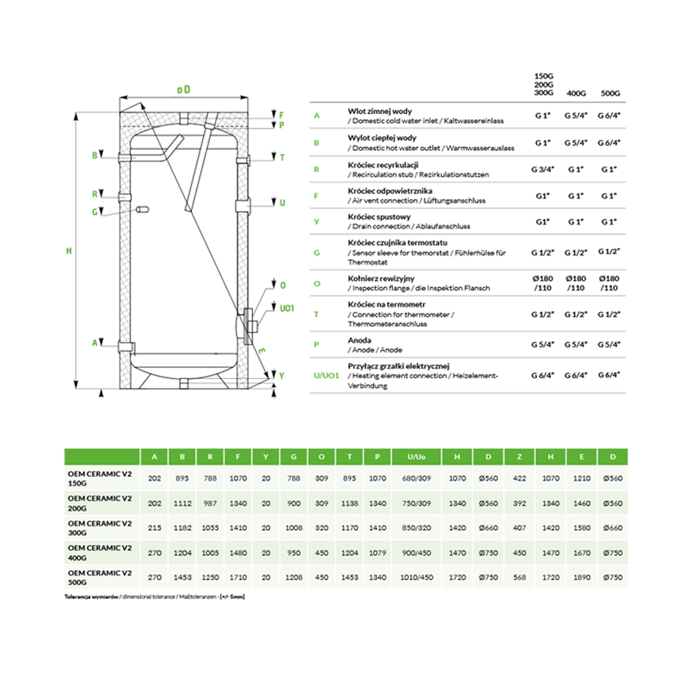 Model V2 400 G bez wężownicy przeznaczony do magazynowania wody użytkowej oraz ewentualnego jej ogrzewania za pomocą opcjonalnej grzałki elektrycznej.