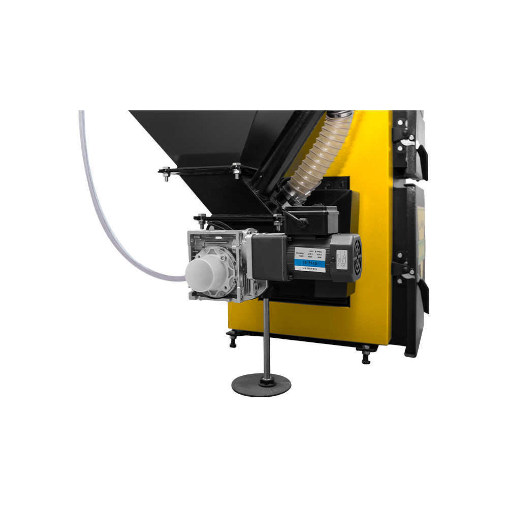 Zbiornik paliwa umieszczony jest z boku kotła, bezpośrednio nad podajnikiem ślimakowym. Wentylator stanowi integralną część palnika i służy do cyklicznego dostarczenia odpowiedniej ilości powietrza do palnika. Ilość dostarczanego powietrza należy regulować mikroprocesorowym regulatorem (sterownikiem), w związku z tym przesłona na wentylatorze powinna być cały czas otwarta. Izolacja cieplna wykonana jest z wełny mineralnej, umieszczonej w kasetach z blach stalowych malowanych proszkowo.