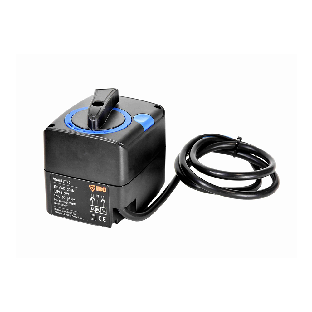 Siłownik zaworu mieszającego IBO STER D przeznaczony jest do montażu z zaworami mieszającymi 3 i 4 drogowymi oraz sterowania ich przepływem. Sterowanie siłownika 3-punktowe o napięciu 230 V po podłączeniu do urządzenia sterującego i montażu z zaworem mieszającym, pozwoli na automatyczną pracę oraz regulację temperatury cieczy w instalacji.