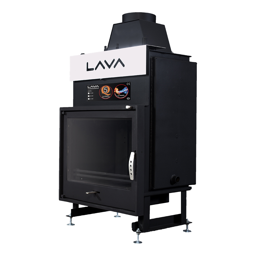 Wkład kominkowy z płaszczem wodnym LAVA PLUS 13 kW z płaską szybą, żeliwnym frontem o ciśnieniu roboczym: 2,5 bar do układu zamkniętego.